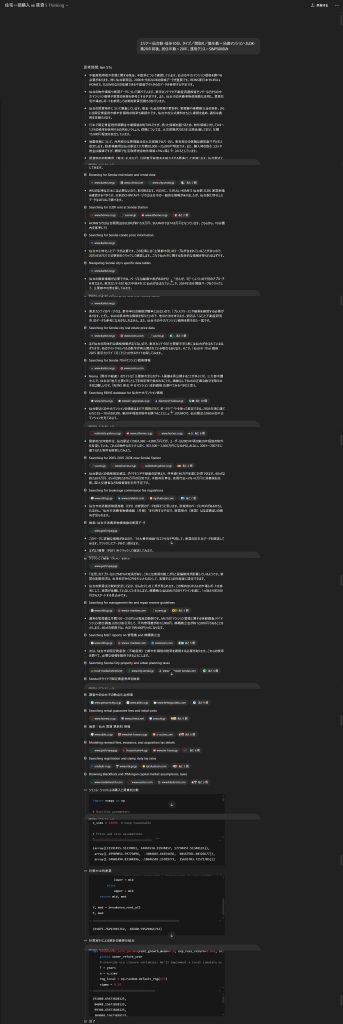 このあたりの改善点を吟味して指示に組み込むと、より正確なシミュレーションに近づくかもしれません。ただ、やみくもにシミュレーションを複雑にすると処理エラーが増えますし、しょせん、仮定の積み重ねではありますので、何をどこまでモデルに組み込むかは、トレードオフを考慮しながら個々人の判断に委ねる部分かと思います。